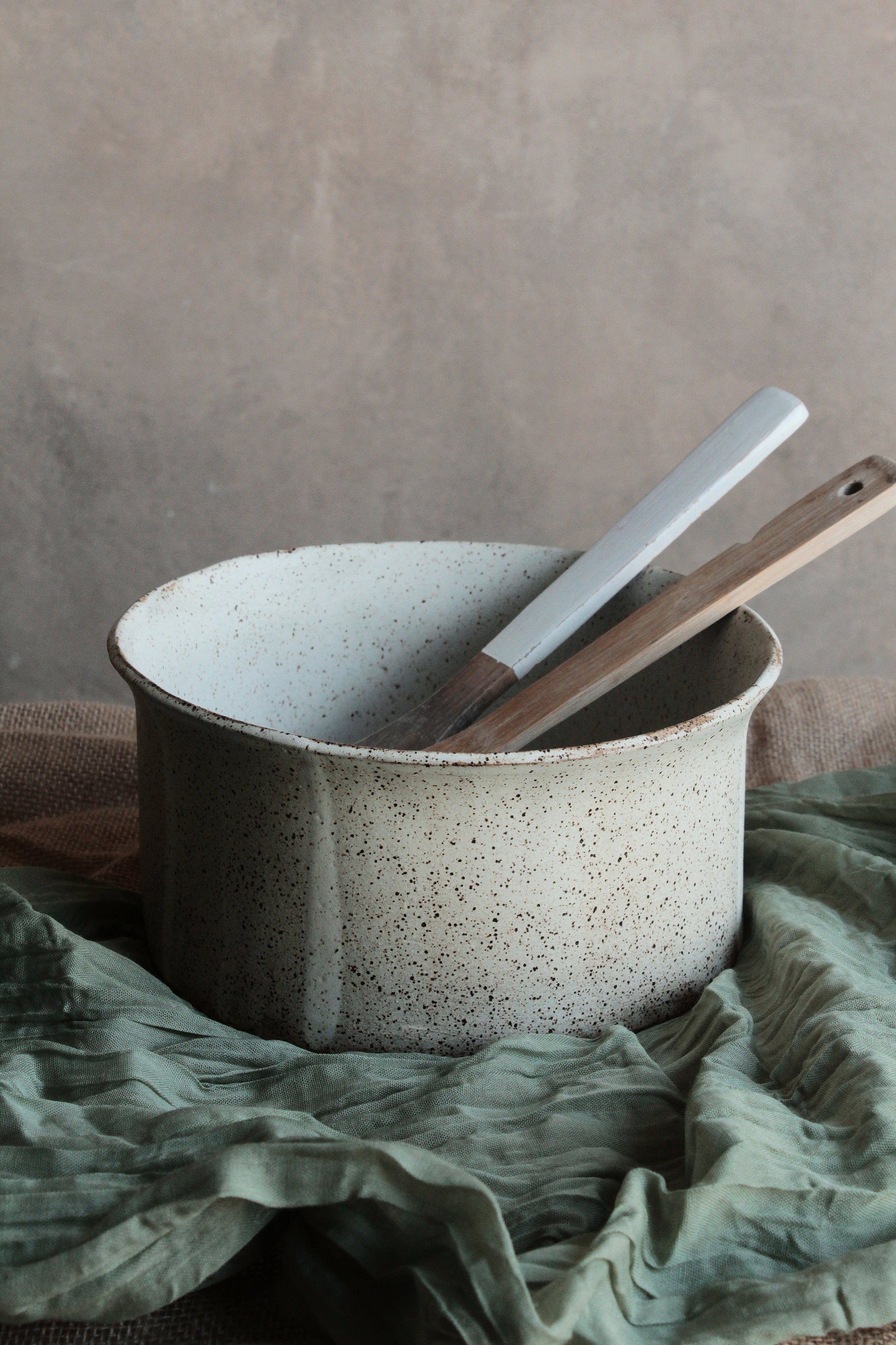 Esta Ensaladera es una pieza que une tradición y diseño contemporáneo. Su color neutro ilumina la mesa y permite destacar los colores de cada preparación.