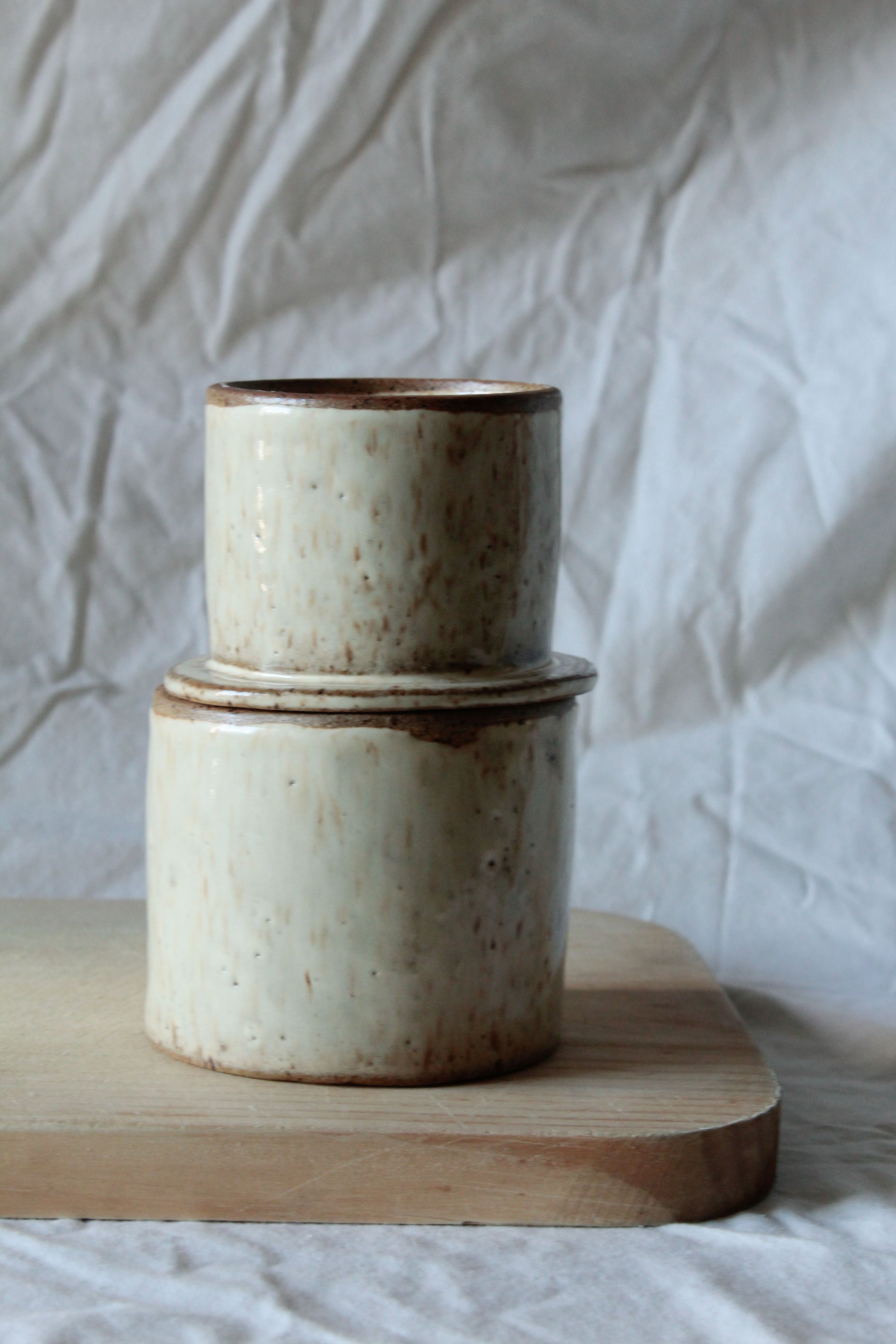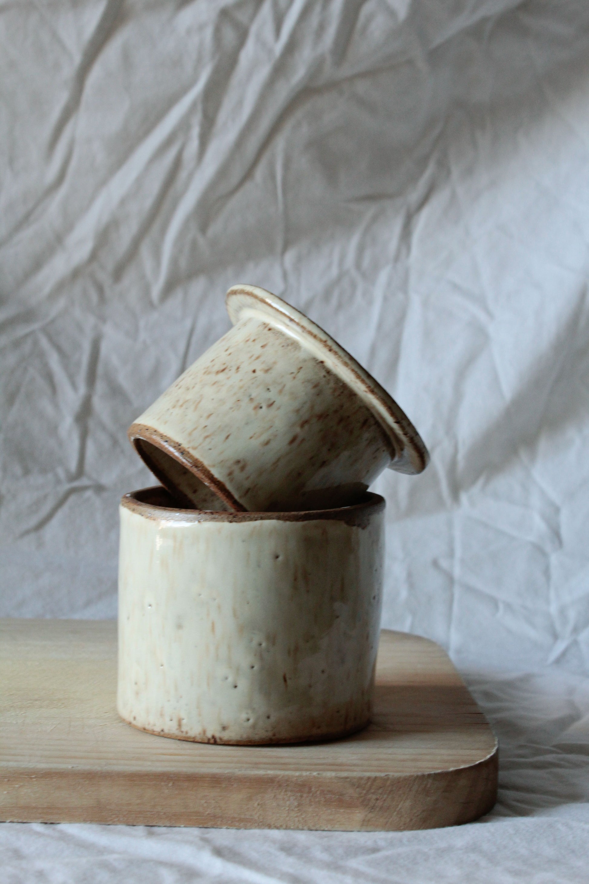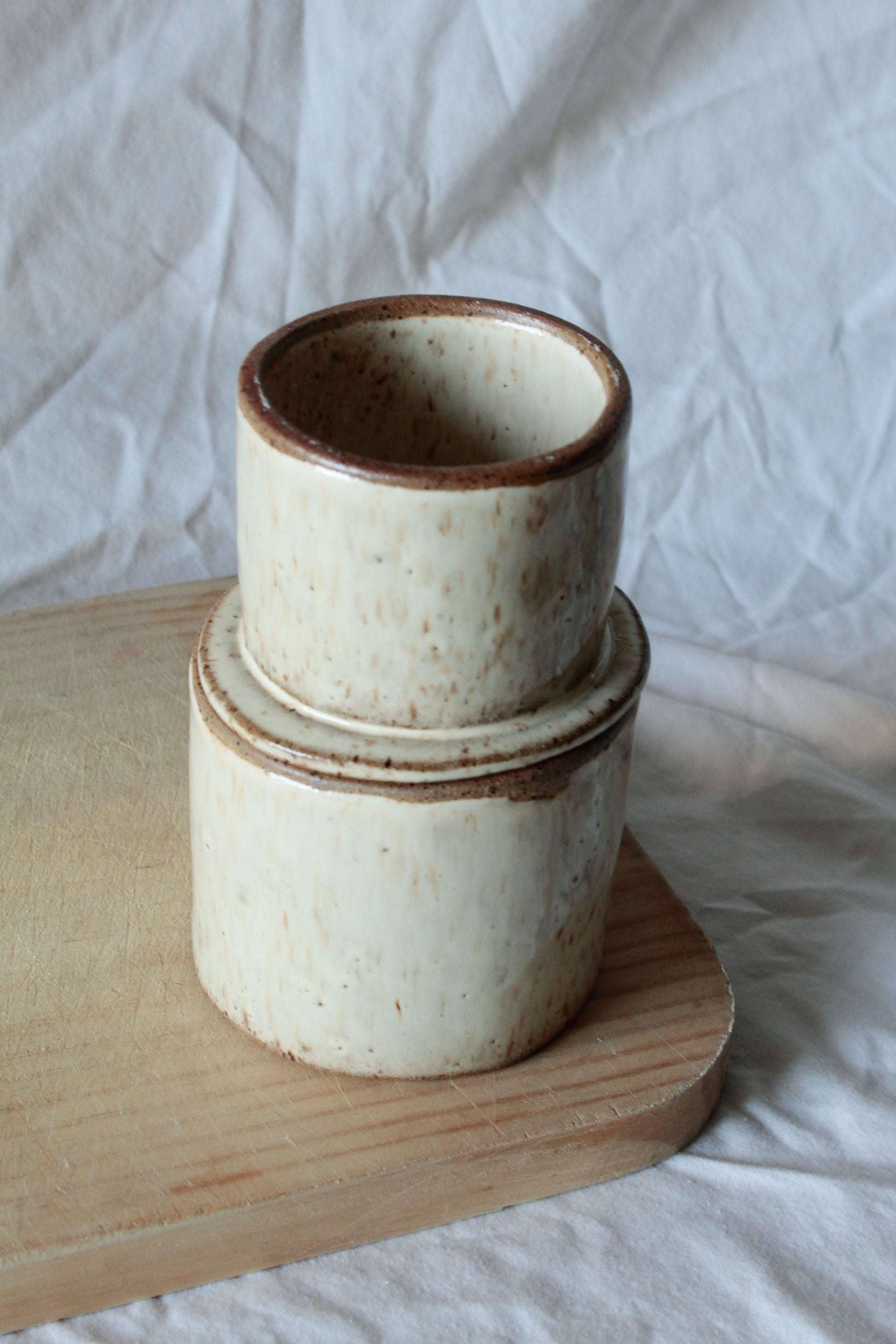 Con esta mantequillera francesa de cerámica gres hecha a mano, podrás mantener la mantequilla fuera del refrigerador y lista para untar en cualquier momento. Solo coloca la mantequilla en el contenedor superior, un poco de agua en el inferior y disfruta de su sistema de vacío que preserva su frescura. Resistente y duradera, combina funcionalidad y diseño artesanal para tu cocina diaria.